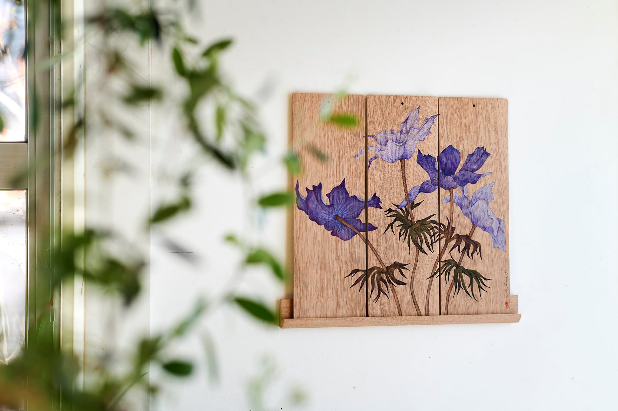 ギリシャ語で「風」を意味する「アネモス」を語源にもつアネモネ。最盛期を迎え、美しく咲き誇る花びらが、風に揺れるさまを感じさせます。 作品詳細|Artwork Details ・板絵1枚のサイズ:W12 × H35 cm ×3枚 ・すべての作品に台座(ビス穴付き)が付属します ・板絵上部のビス穴を使用し、壁に直接掛けることも可能です 写真のように間隔を空けて飾るほか、ぴったりと並べて一枚の絵のように飾ることもできます。空間に合わせて、さまざまな展示方法をお楽しみください。 ▪️購入に際してのお願い 配送は着払いにてお送りいたします。お届け先の地域により送料が異なるため、金額が確定次第、メールにてご案内いたします。 ▪️キャンセル・返品について|Cancellation & Return Policy ※すべての作品は一点もののため、お支払い確定後のキャンセル・返品は原則としてお受けできません。 ※万が一、配送中の破損や作品に明らかな不備があった場合には、到着後速やかにご連絡ください。状況を確認のうえ、対応いたします。